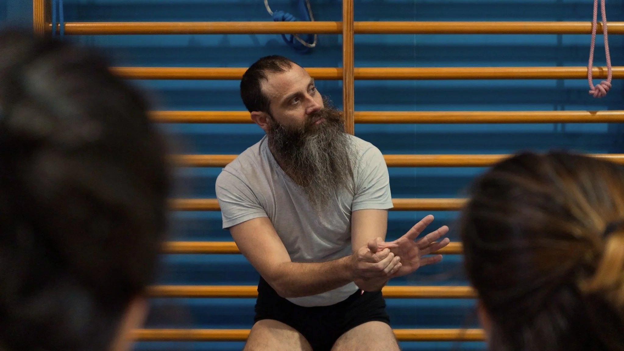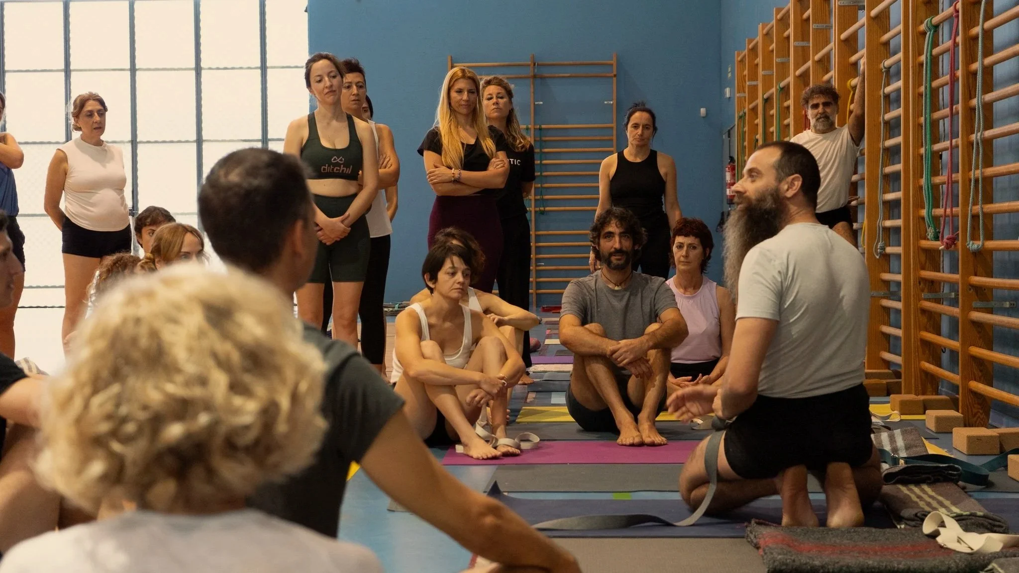 Los intensivos presenciales profundizan en el estudio de las asanas, trabajando distintas familias de posturas con variaciones, progresiones y el uso preciso de soportes. La permanencia consciente y los ajustes minuciosos permiten refinar la alineación y organizar el cuerpo con estabilidad y claridad.